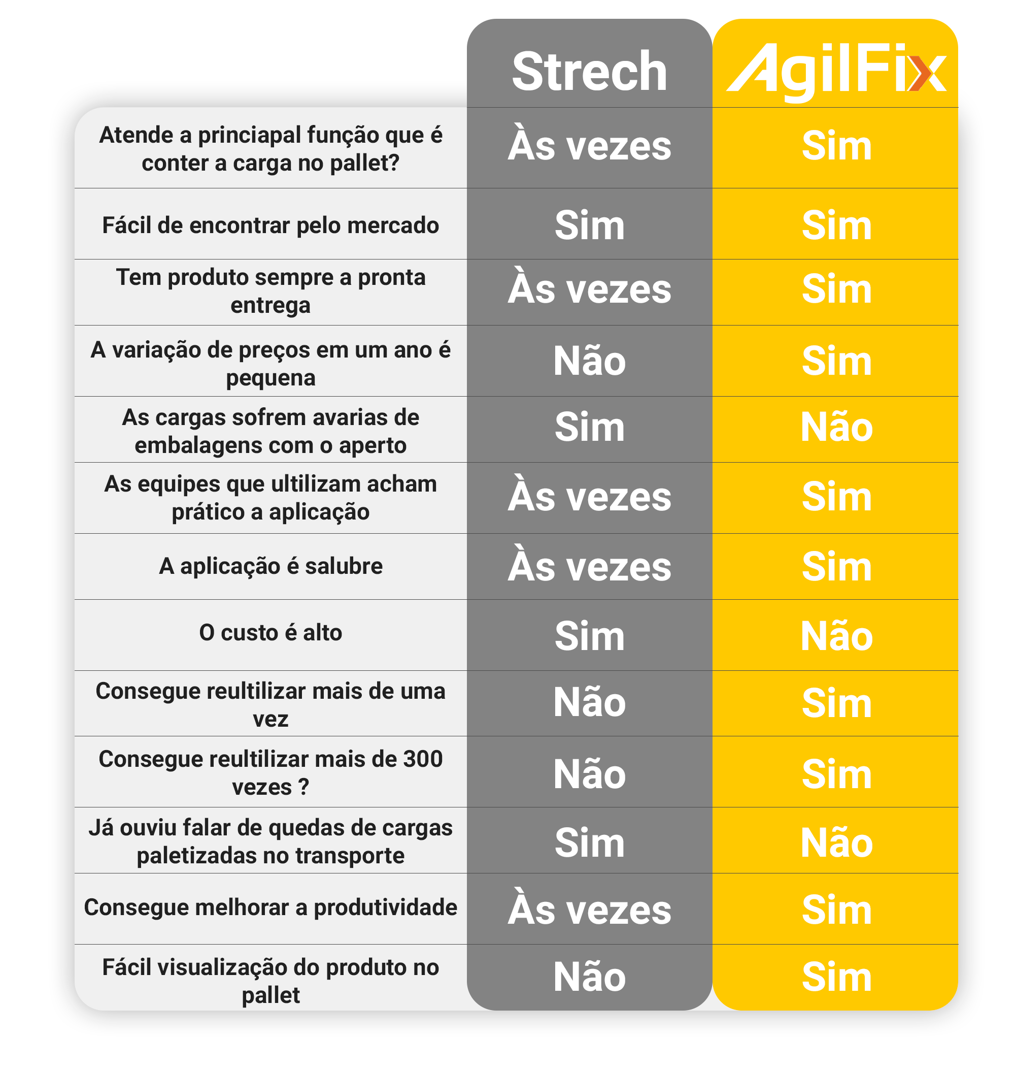 As cintas e cantoneiras da Agilfix garantem economia, eliminando o uso excessivo de filme stretch e reduzindo até 30% dos custos com materiais e armazenamento.